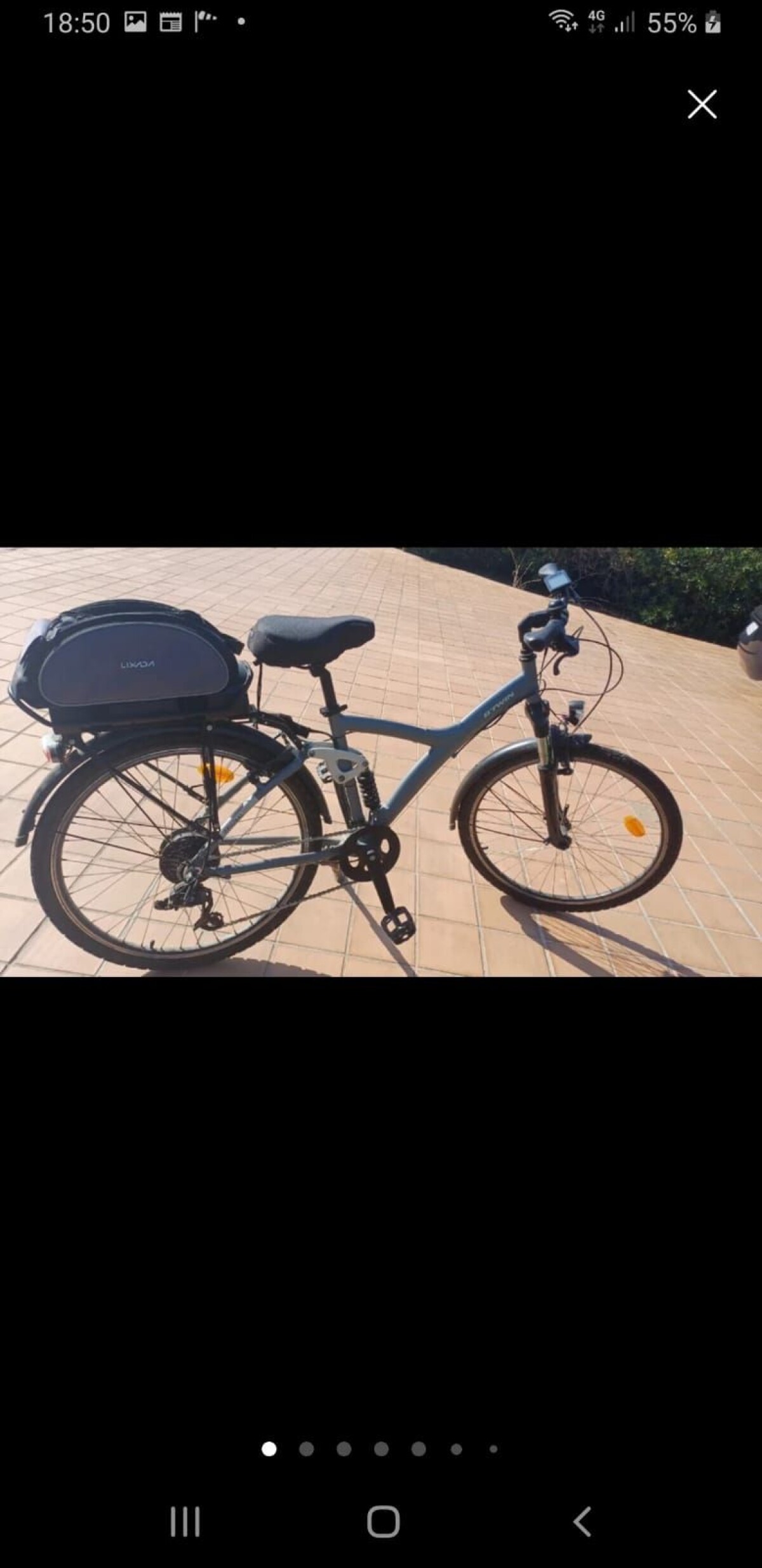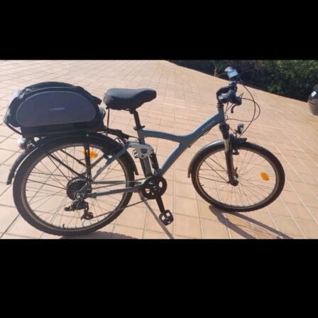 Marca BTWIN, talla M. Ideal para desplazamientos urbanos y rutas. Color gris, 3 niveles de asistencia, cambio Shimano Altus, amortiguación delantera y trasera. Autonomía aproximadamente de 80km usando la asistencia más baja, Ruedas de 26". Se puede probar.