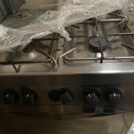 A gas, con 6 fuegos y horno. En buen estado.