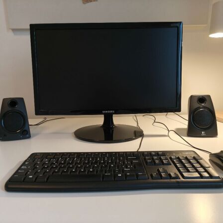 Monitor Samsung de 22", modelo L-S22C150N. Teclado LogitecK120 con cable usb. Mouse Logitec B100 con cable usb y altavoces Logitec Z130.