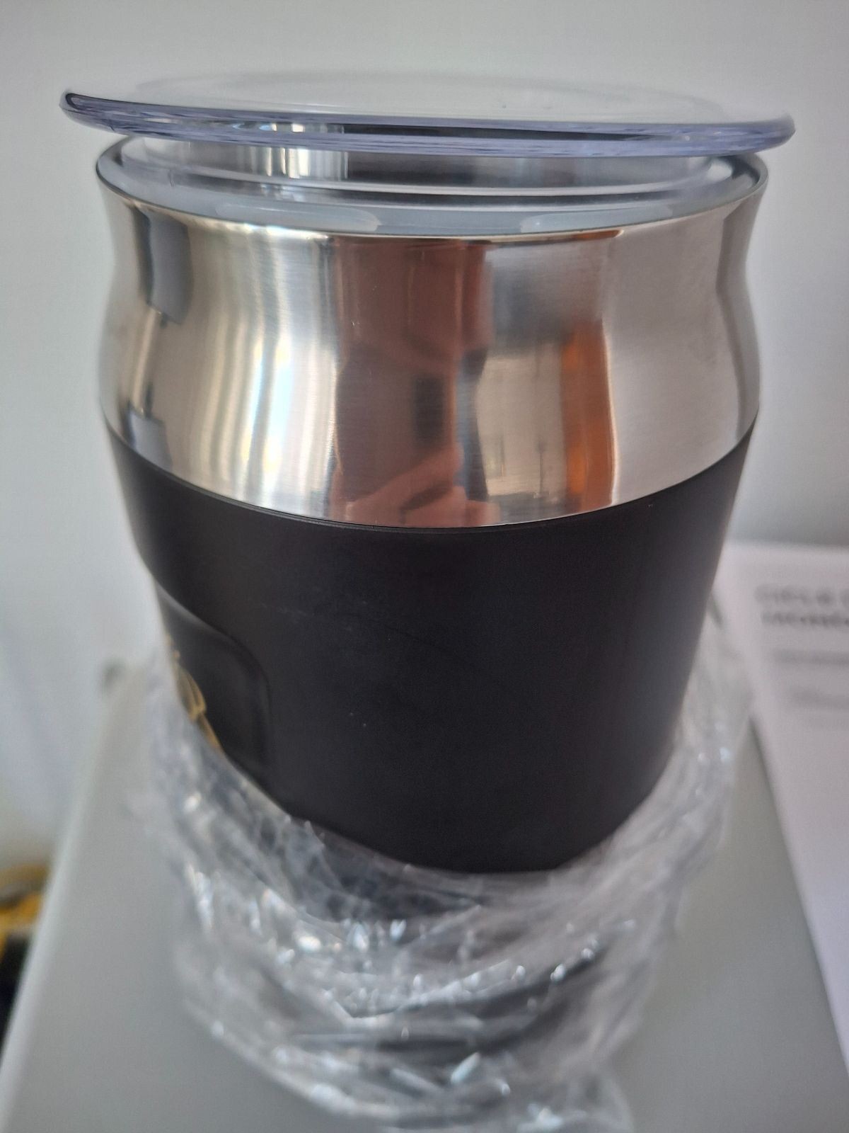 Milk Frother. Color negro y plateado, sin estrenar. Ideal para hacer un delicioso café con leche o chocolate.