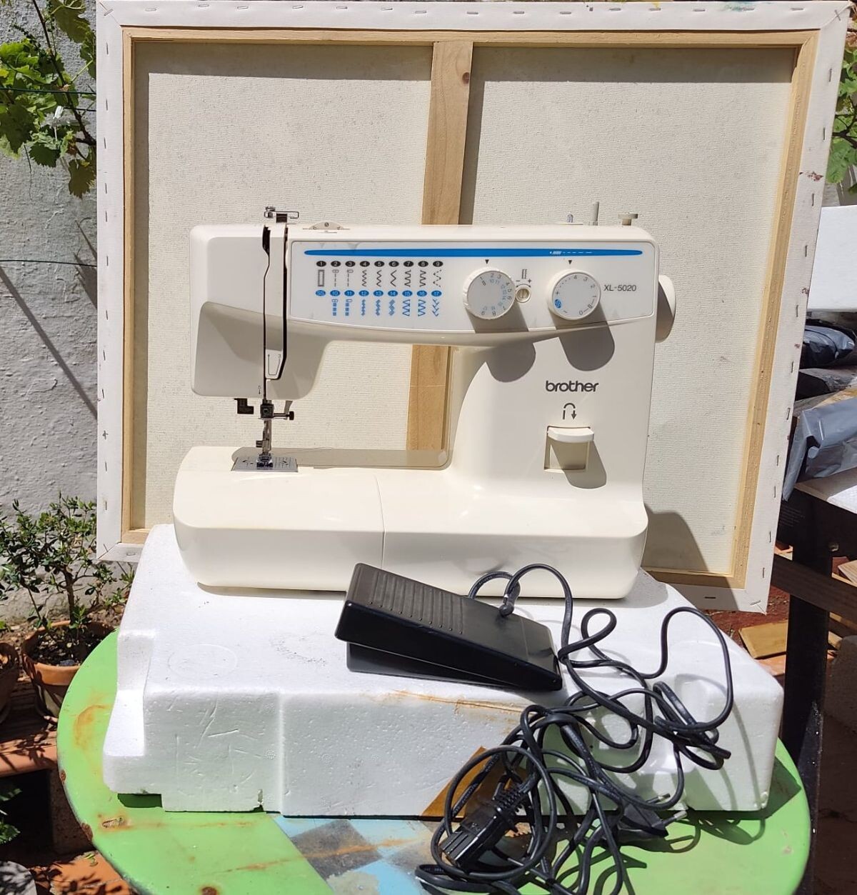 Eléctrica, marca Brother, en su cartón original. Solo se usó una vez y se quedó en su embalaje. Creo que tiene más de 20 años y está como nueva, aunque los plásticos están un poco amarillentos.